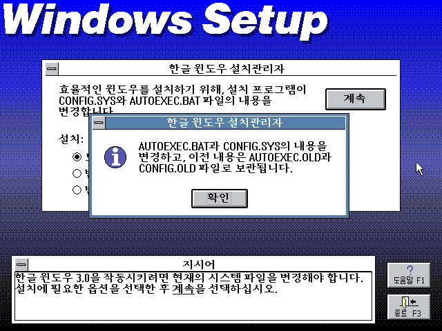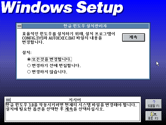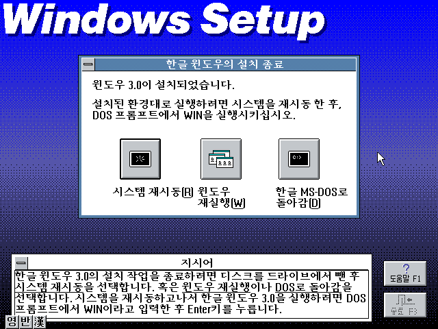윈도우 3.0이 설치되었습니다. 3.01이라는 표기는 어느곳에서도 볼 수 없습니다.
