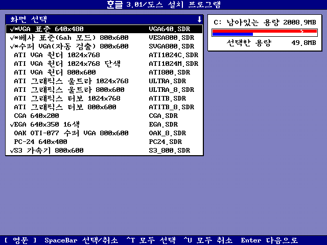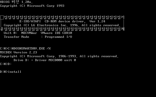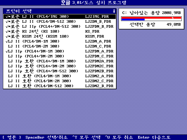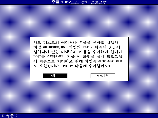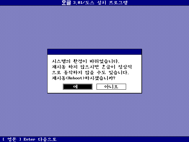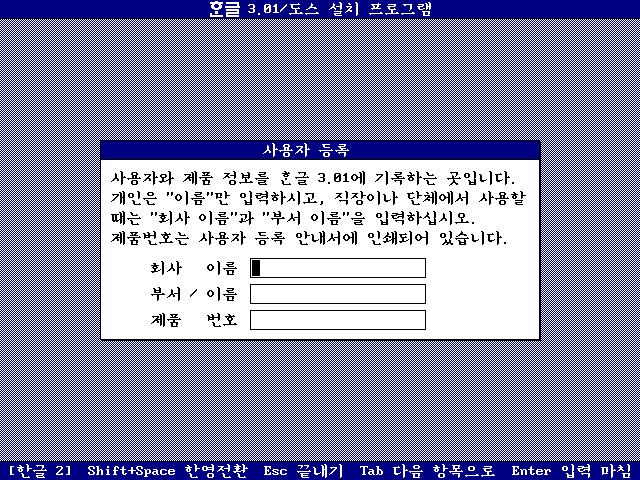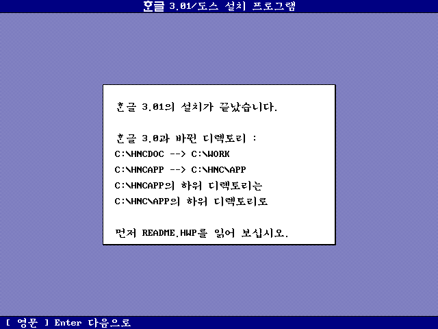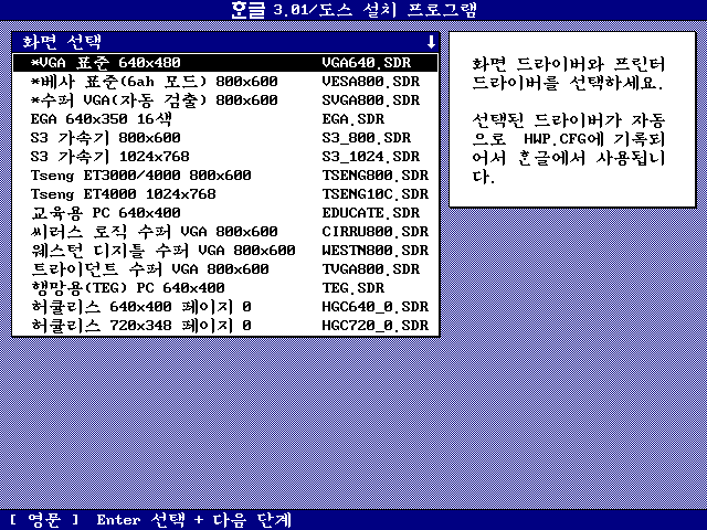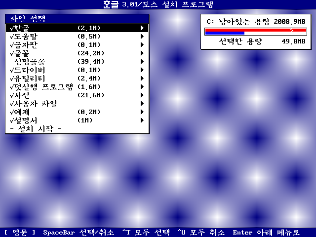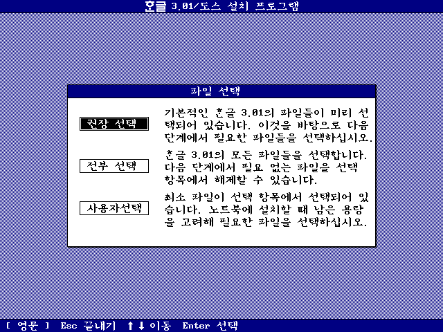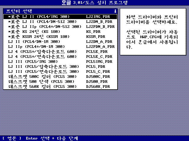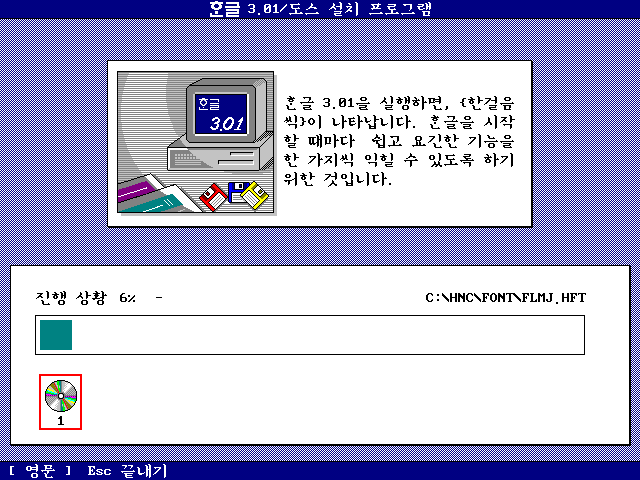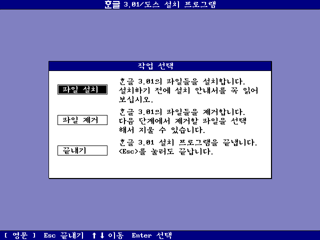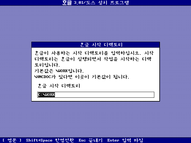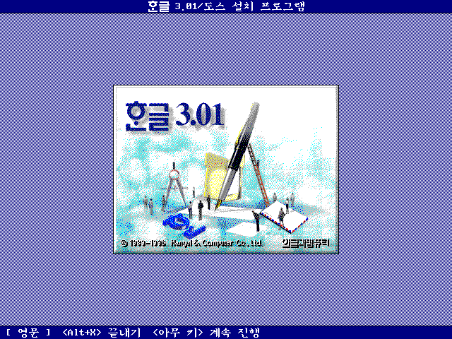 한글 3.01 설치를 시작합니다. 도스용이라고 표기가 되어 있습니다.