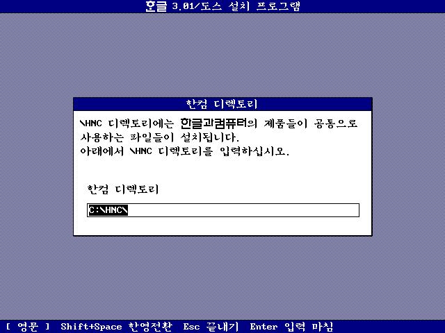 한글을 설치할 디렉토리를 선택합니다. C:\HNC로 설정하고 엔터를 누릅니다.