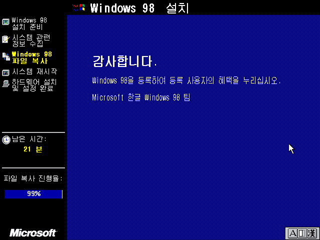 이상 Windows 98 설치기였습니다.