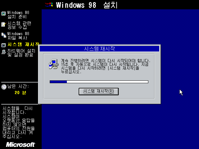파일 복사가 완료된 후 시스템을 재시작합니다.