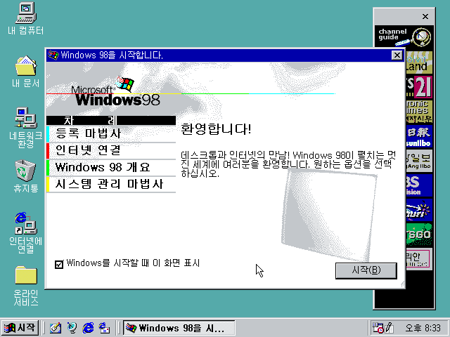 윈도우 98의 세계로 초대되는 중입니다.