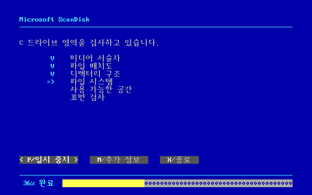 마이크로소프트 스캔디스크가 드라이브를 검사합니다.