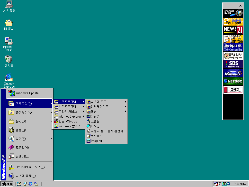 시작 메뉴의 프로그램에서 보조프로그램 항목을 열어보았습니다. 큰 구성은 윈도우 95에서 크게 달라진 것은 없습니다.