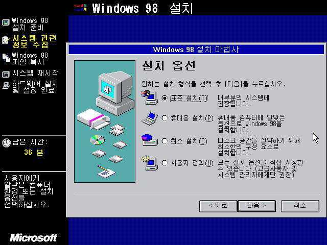 설치 옵션을 선택합니다. 표준 설치를 선택합니다.