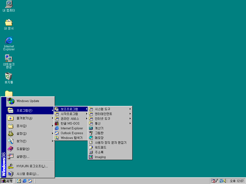 시작 메뉴의 보조프로그램 항목을 열어보았습니다. 98과 동일합니다.
