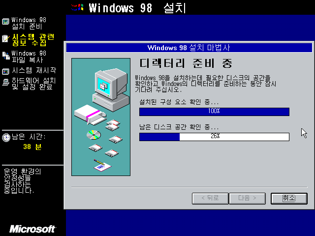 설치된 구성 요소와 디스크 공간 확인 중입니다.