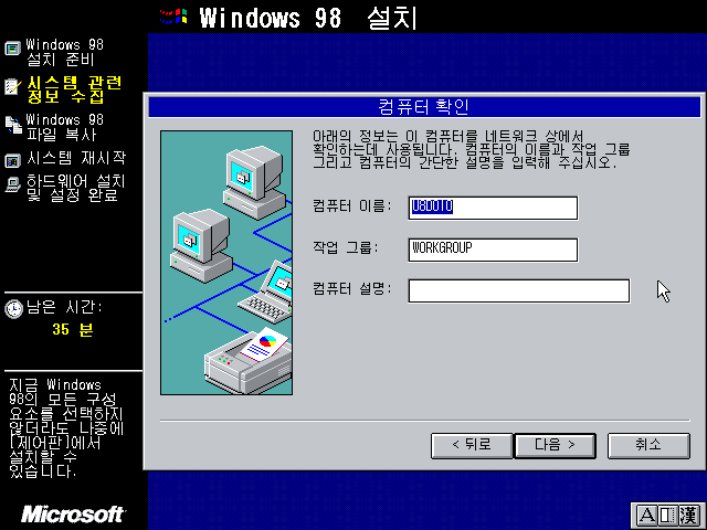 컴퓨터 이름과 작업 그룹을 입력하고 다음을 누릅니다.
