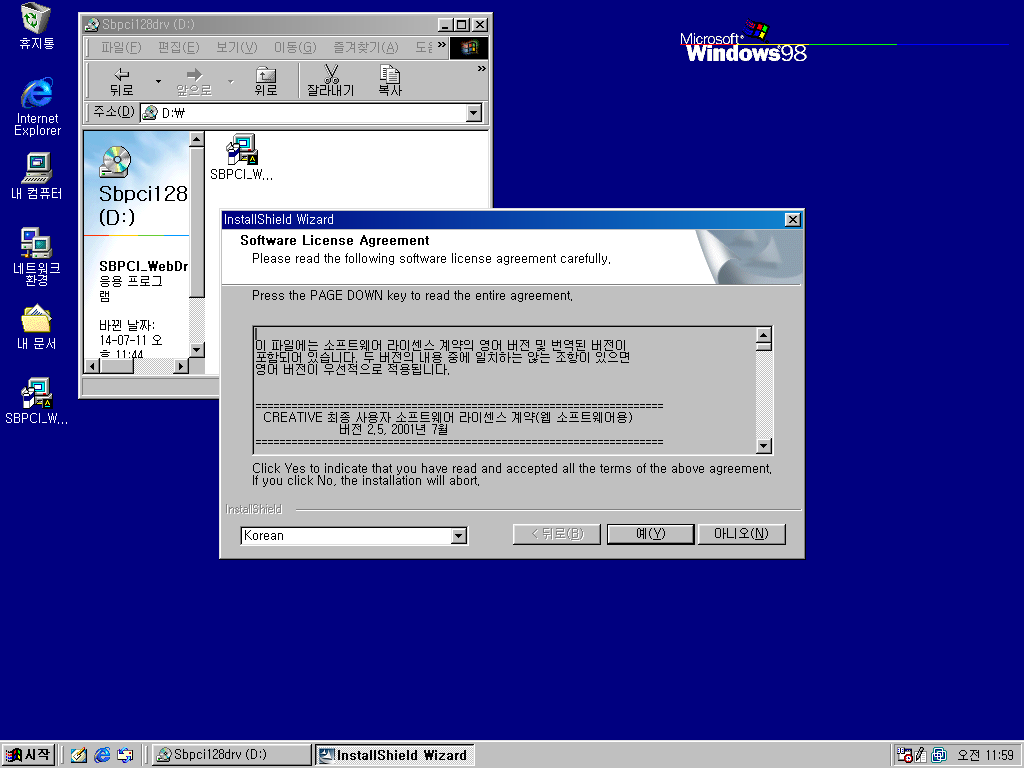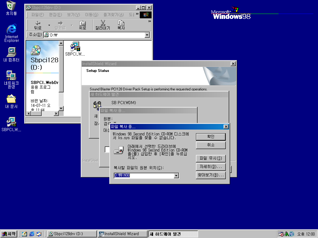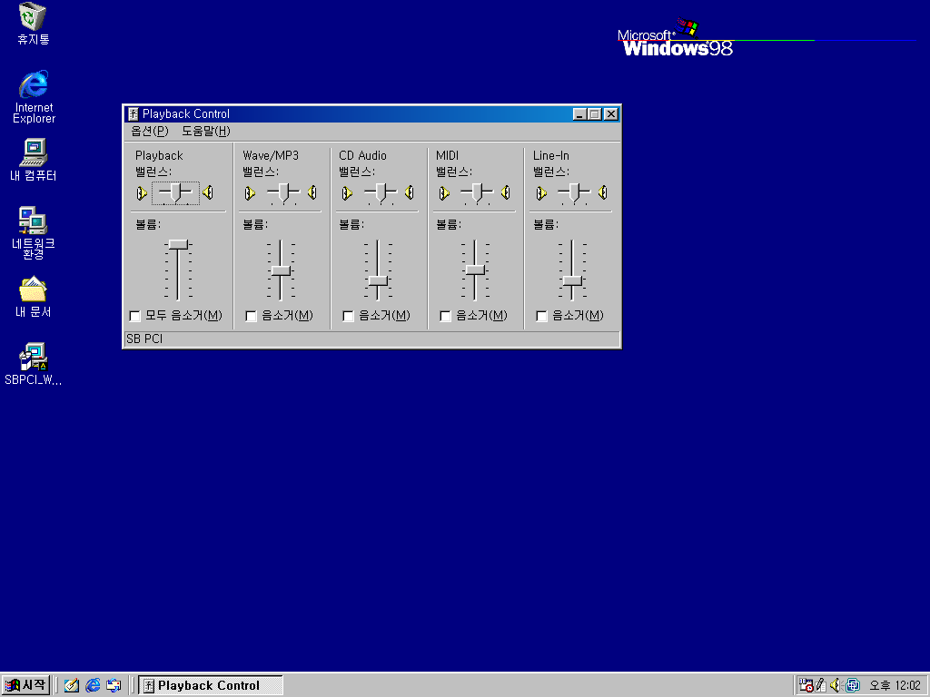 윈도우 98용 SB PCI 128 사운드 드라이버입니다. VMWare에서 사용 가능합니다. 참고로 설치 중 윈도우 98 설치 CD를 넣어야 하는 과정이 있기 때문에, 설치 파일을 바탕화면 같은 곳에 옮겨놓고 설치하셔야 합니다. 4.66MB 디스크 이미지 한 장입니다.