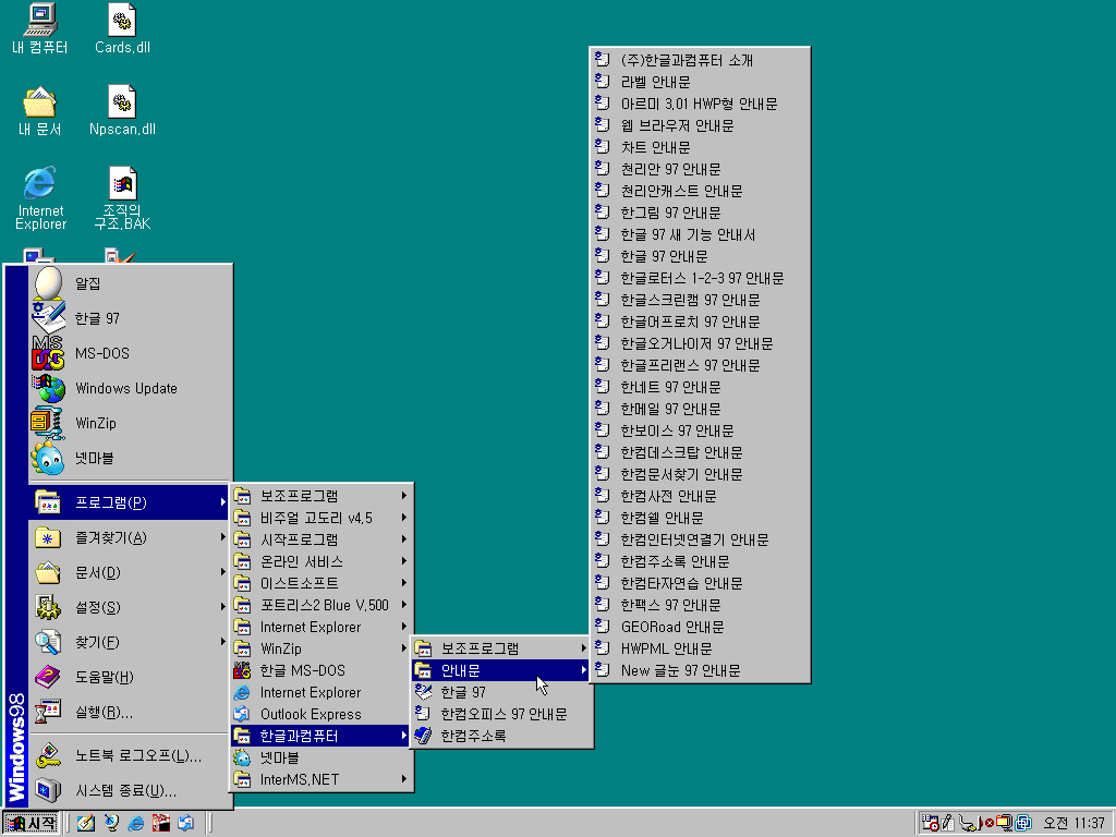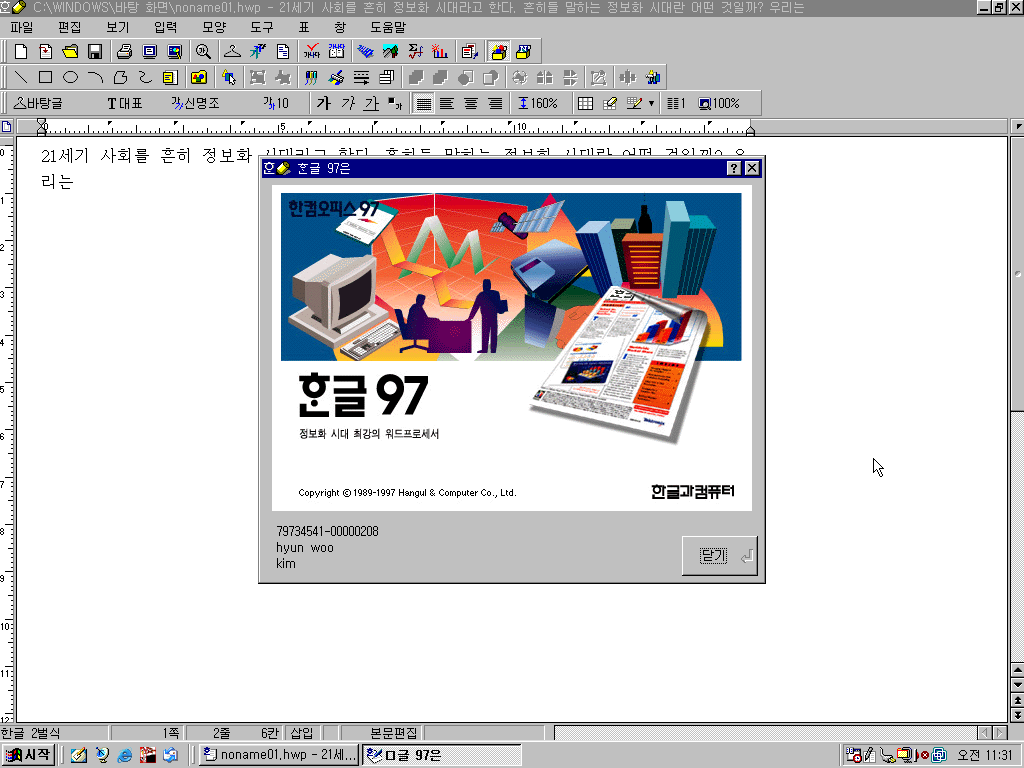 아래아 한글 버전은 다 예상하셨다시피 한글 97이었습니다. 명작이죠.