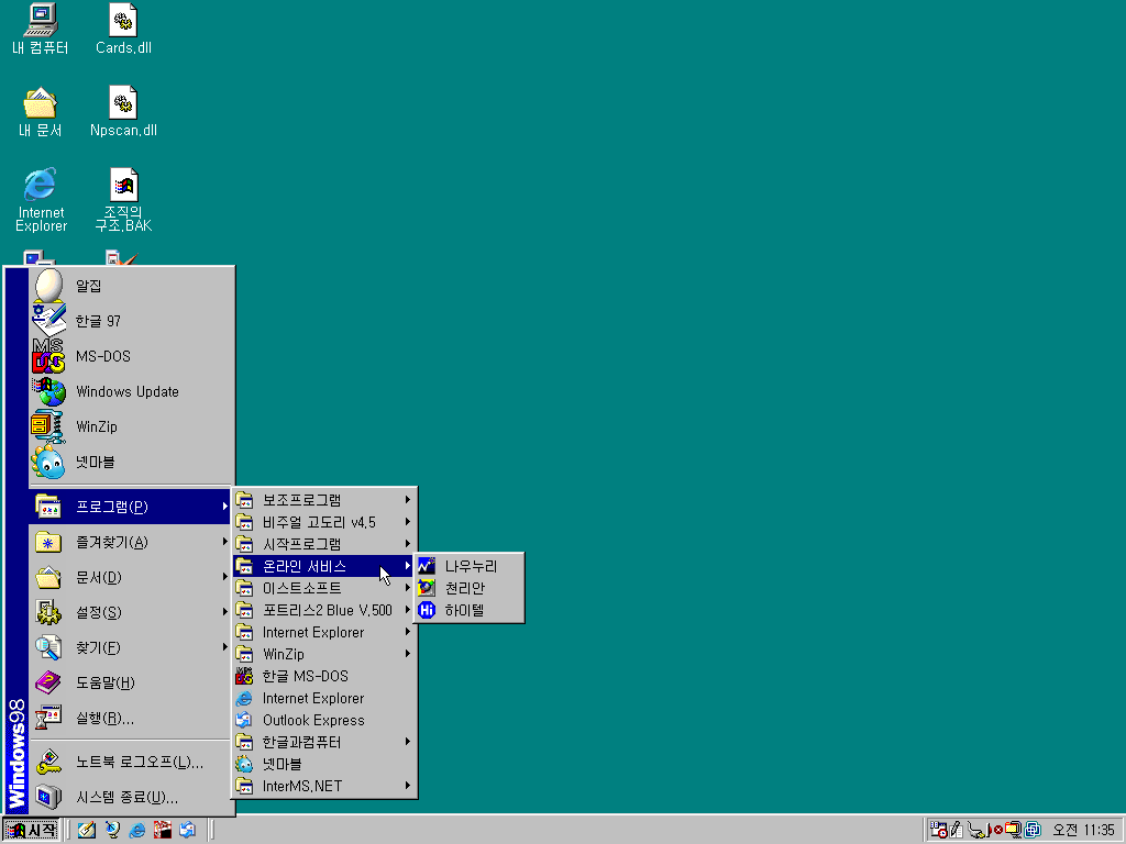 온라인 서비스로는 PC통신의 삼대장인 나우누리, 천리안, 하이텔이 설치되어 있었구요.
