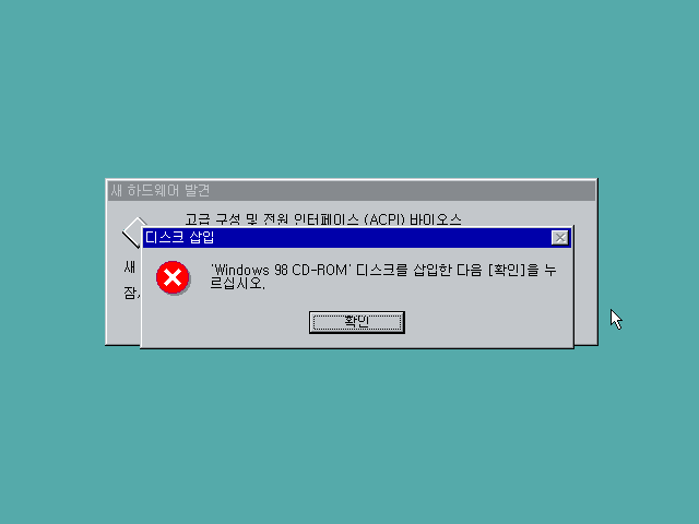 바로 응 아니야를 해버립니다. 윈도우 98 설치 CD가 필요하답니다.