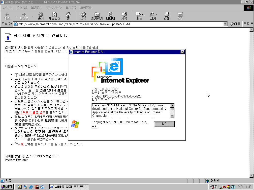 인터넷 익스플로러입니다. 버전 6.0이 설치되어 있었습니다. 어쩌다가 정식판도 아닌 RC 버전을 계속 쓰시게 된 건지...