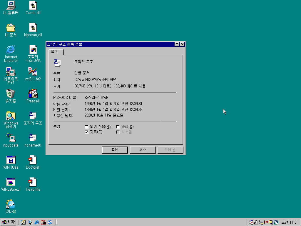 등록 정보를 보니 1996년 1월 1일이라고 나옵니다. 96년 새해 첫날부터 무엇 때문에 이런 문서를 작성한 걸까요? 그리고 날짜만 보면 윈도우 95에서 작성하던 문서이지 않을까 라는 생각도 듭니다.
