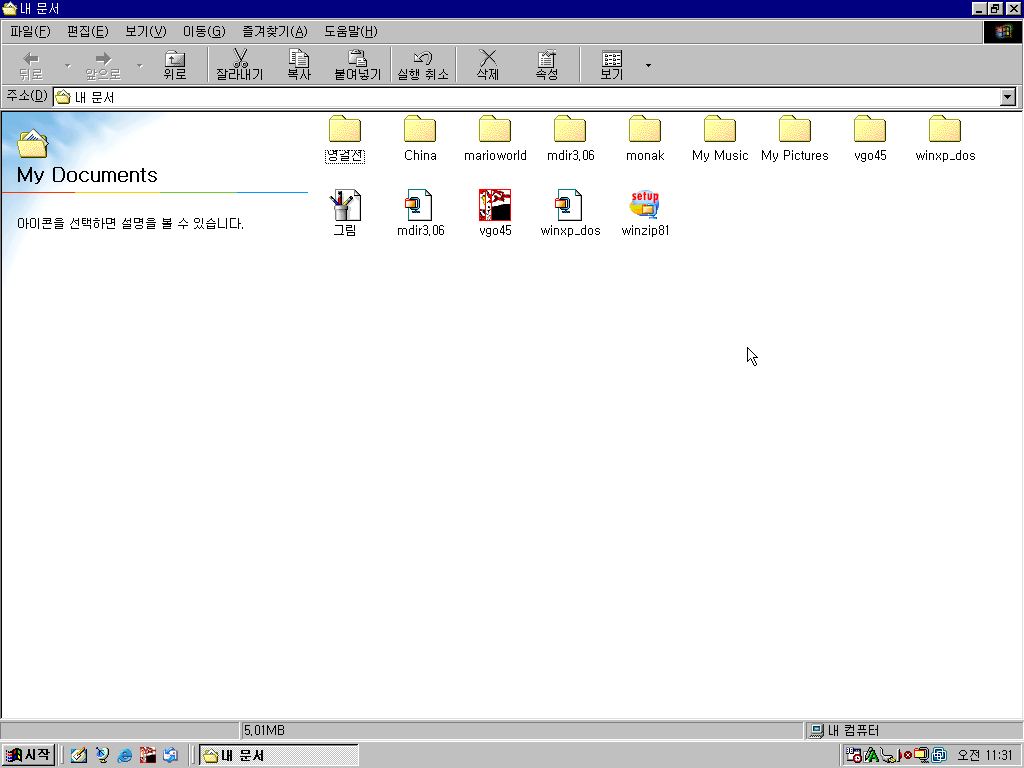 내 문서 폴더를 열어보았습니다. 각종 게임이 보이는데요, 영걸전, 마리오월드, 고도리까지.. Mdir도 보입니다.