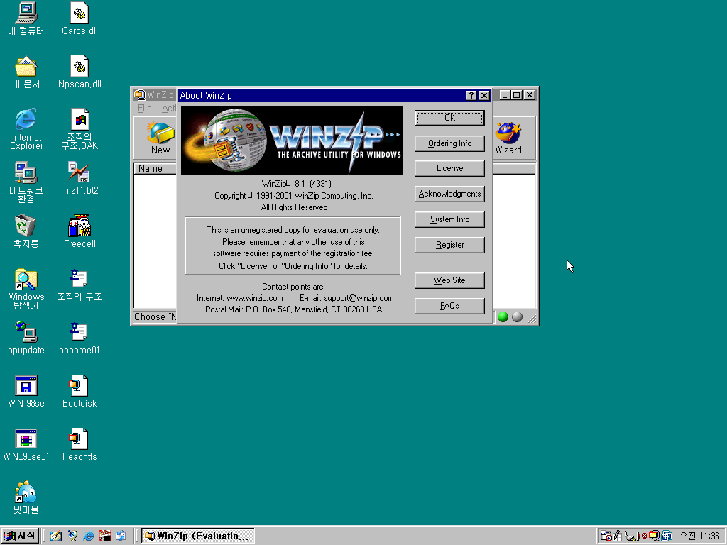 WinZip 버전 8.1입니다. 그때 압축 좀 전문적으로 하던 사람들은 WinZip을 썼던 기억이 납니다.