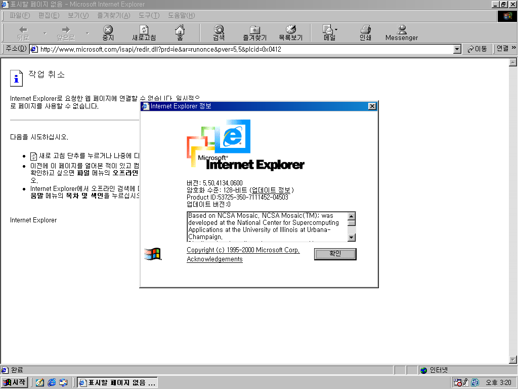 인터넷 익스플로러 5.5입니다. 빌드 넘버는 5.50.4134.0600입니다. 윈도우 95와 윈도우 NT 4.0, 윈도우 98 및 윈도우 98 SE, 윈도우 2000에서 설치 가능합니다. 50.2MB 디스크 이미지 한 장입니다.