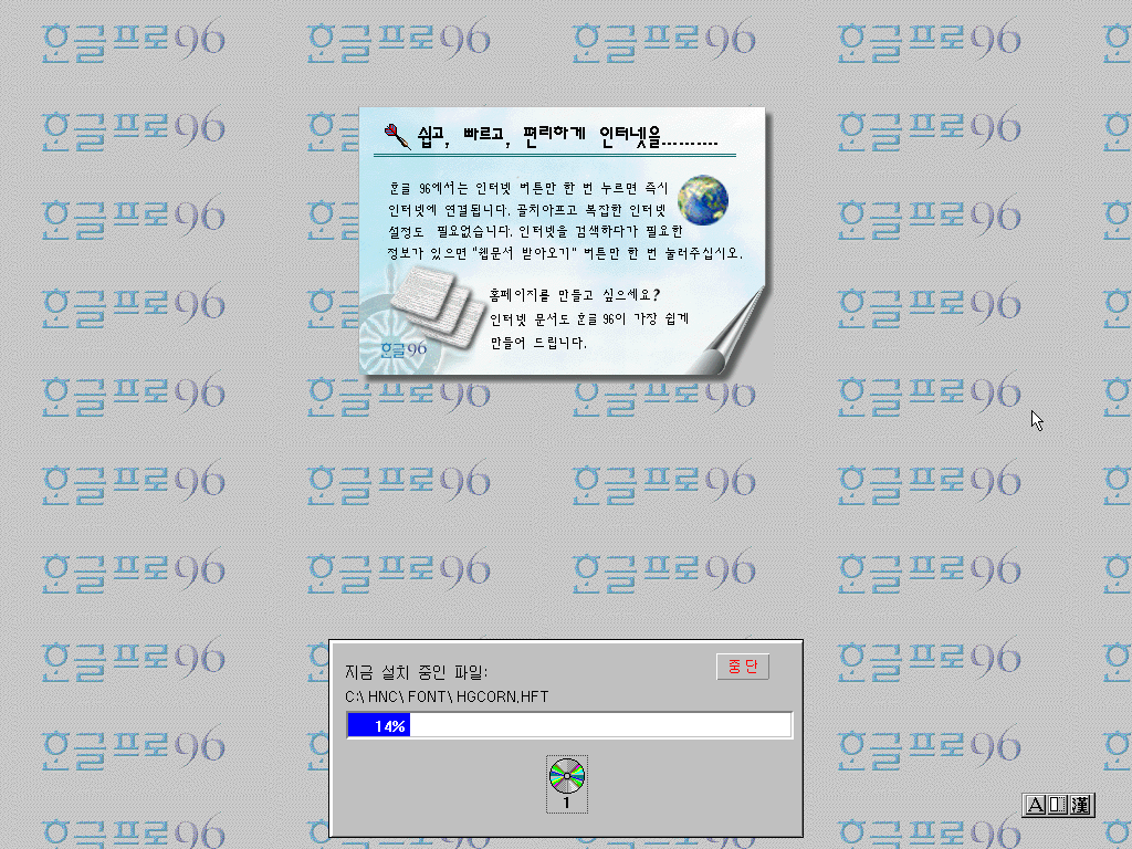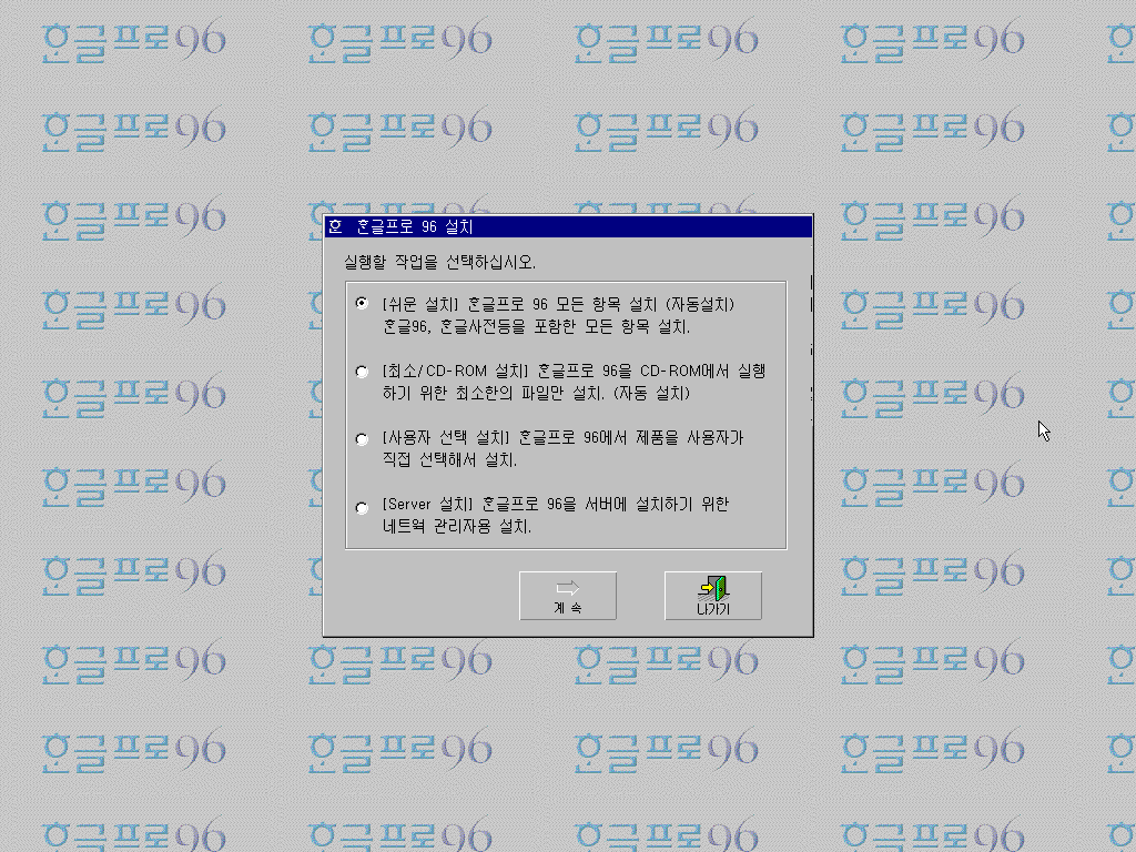 이상 한글 96 평가판 설치기였습니다.