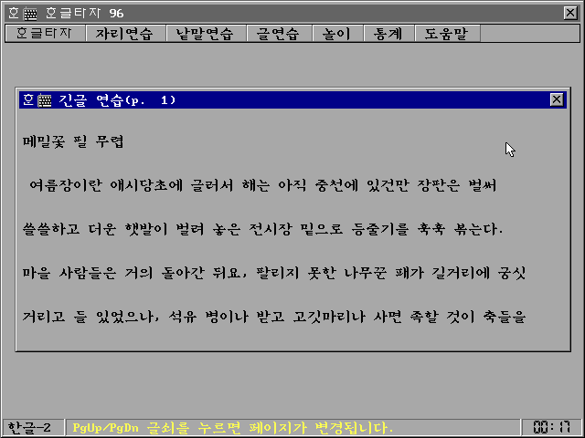 긴글 연습에서 메밀꽃 필 무렵을 켜본 모습입니다. 가장 대표적인 연습 글이죠.