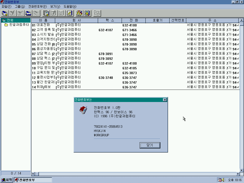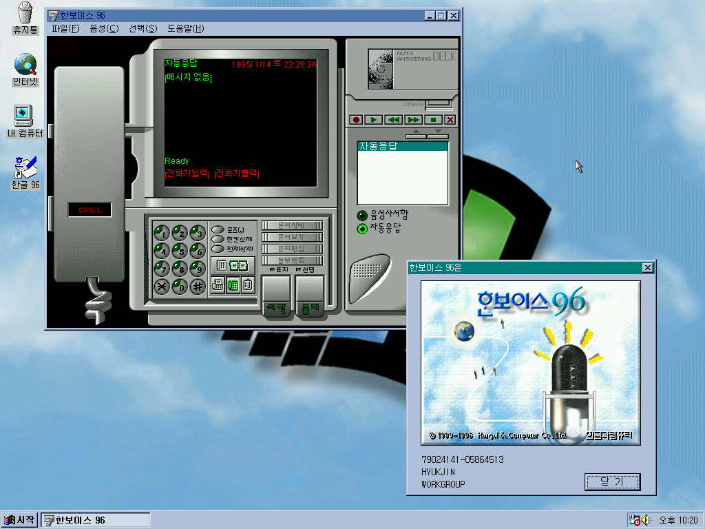 한보이스 96입니다. 전화와 자동응답 기능이 있는 프로그램입니다.