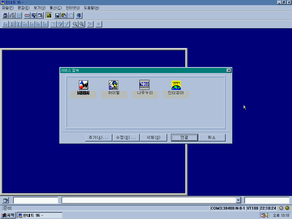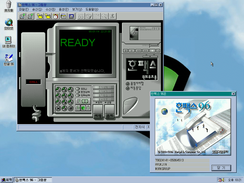 한네트 96입니다. PC통신 서비스를 통해 통신을 할 수 있습니다.