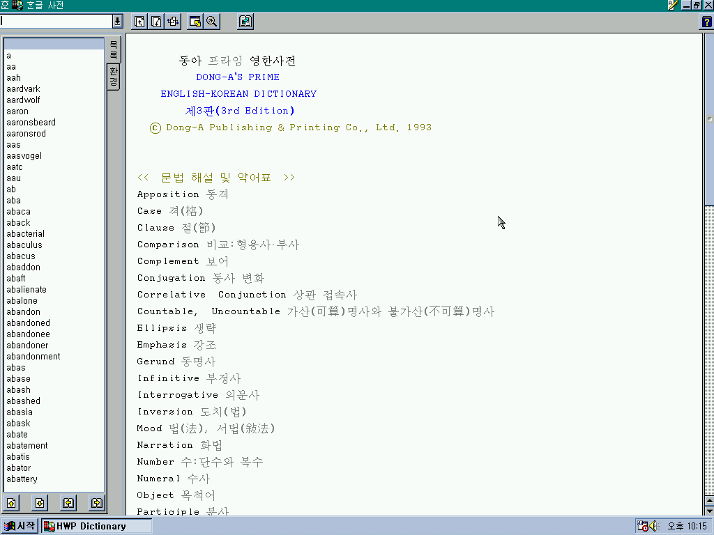 한글 사전입니다. 동아 프라임 영한사전이 탑재되어 있습니다.