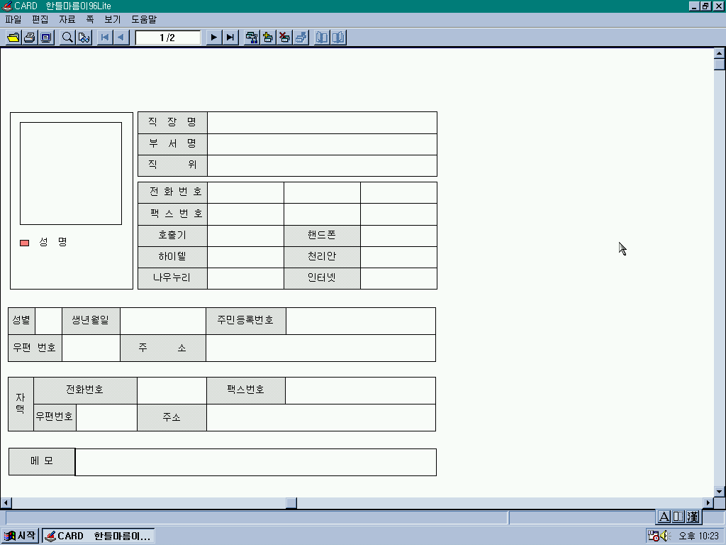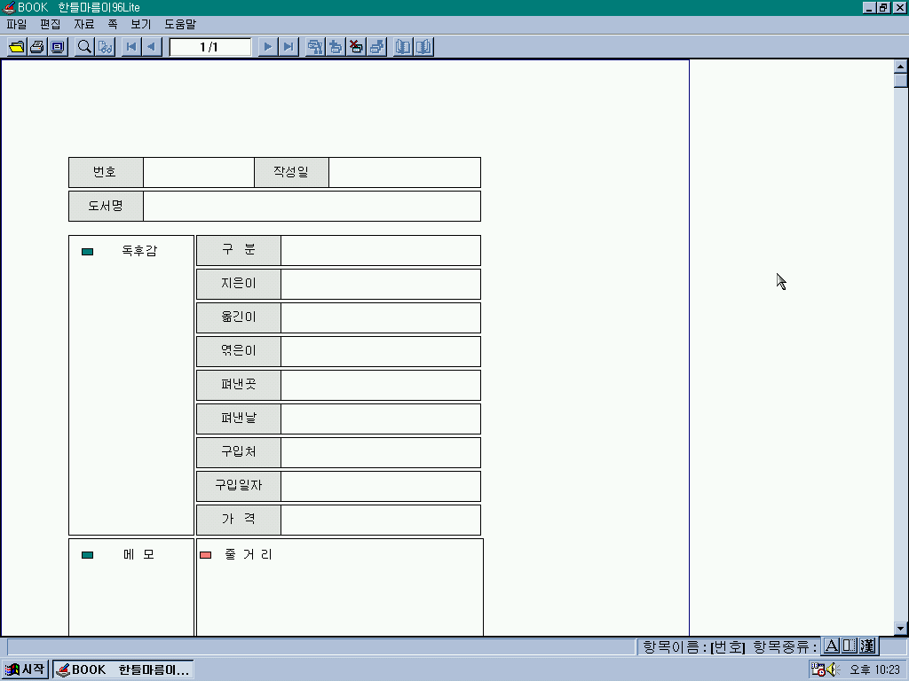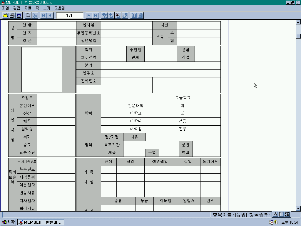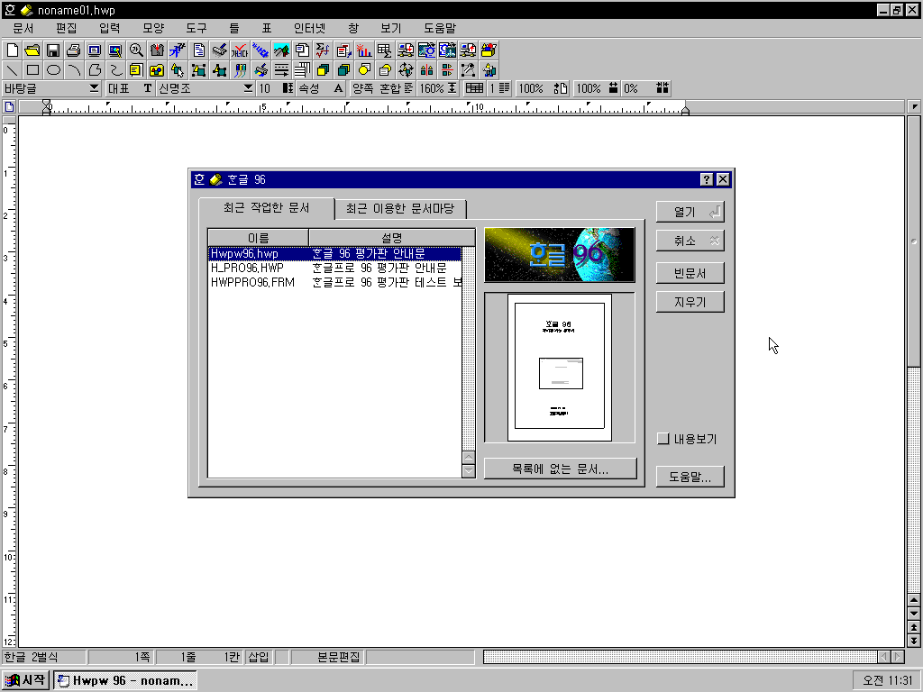 한틀마름이 96입니다. 여러가지 문서를 작성할 수 있는 기본 틀을 제공하는 프로그램입니다.