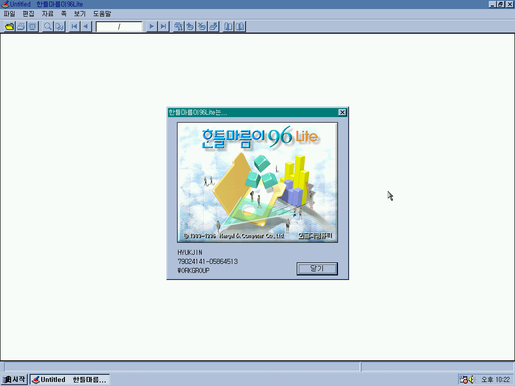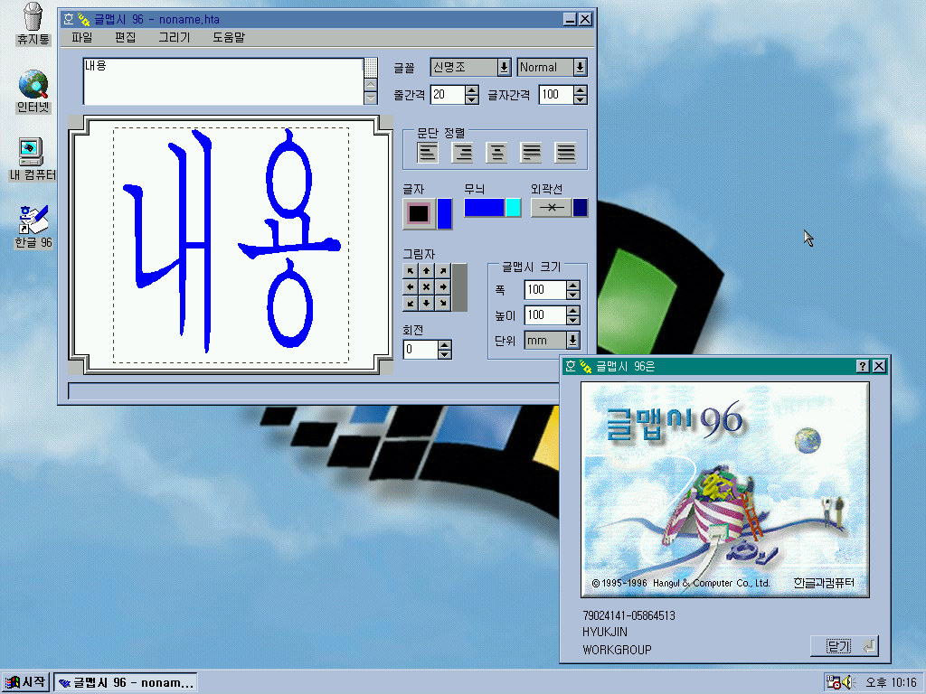 한글 96 평가판의 모습입니다. 정식판과 똑같습니다.