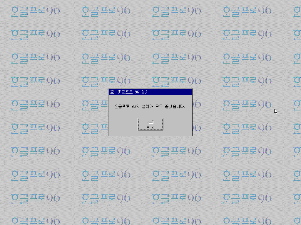 한글프로 96 평가판의 설치가 모두 끝났습니다.