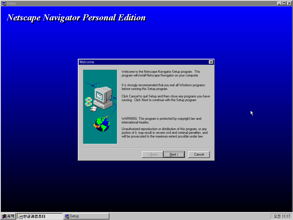 이어서 바로 넷스케이프 네비게이터 설치가 진행됩니다.. 아예 CD에 넷스케이프가 들어있더라구요.