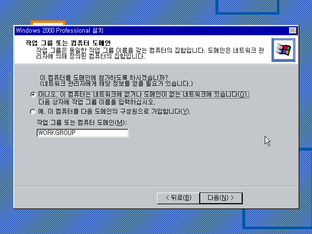 작업 그룹 또는 도메인을 선택합니다.