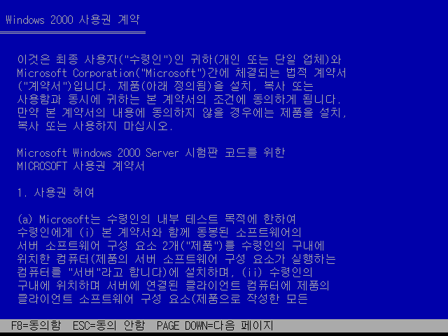 사용권 계약서입니다. F8을 눌러 동의해줍니다.
