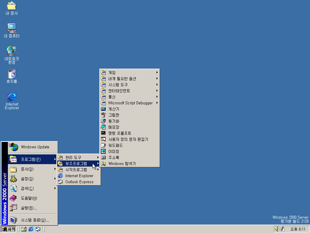 Windows 2000 Server RC2 Build 2128를 설치해보았습니다. 지난번에 설치한 프로페셔널과 마찬가지로 서버 RC2판입니다.