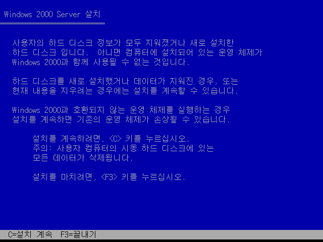 하드 디스크가 새것입니다. C를 눌러 계속합니다.
