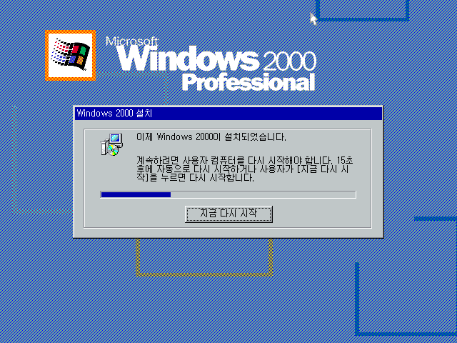 시스템을 재시작합니다. 여기까지는 일반 윈도우 2000