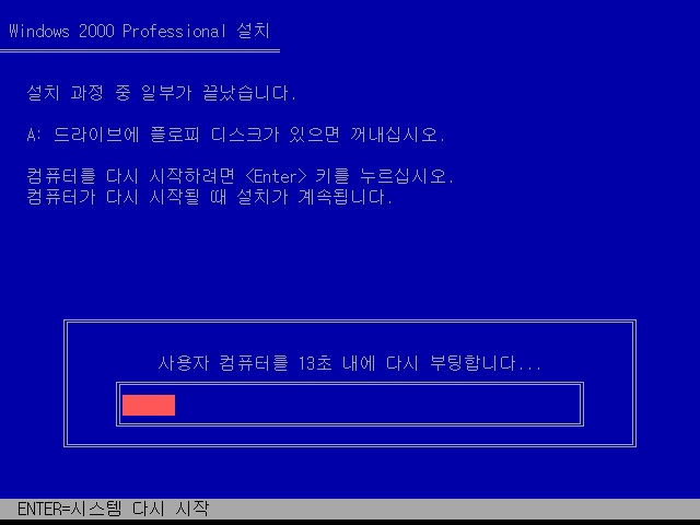 시스템을 재시작합니다. 여기까지는 일반 윈도우 2000