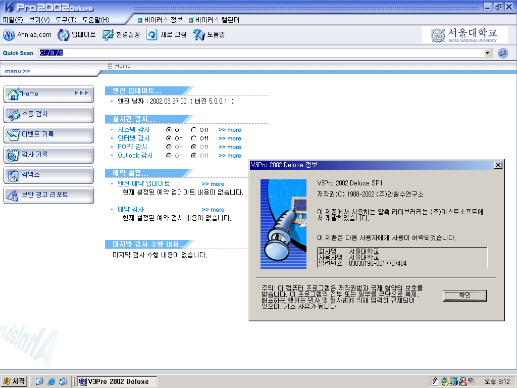 V3 Pro 2002입니다. 디럭스 버전이구요. 이것도 예전에 학교 컴퓨터에 깔려있던 게 기억나네요.