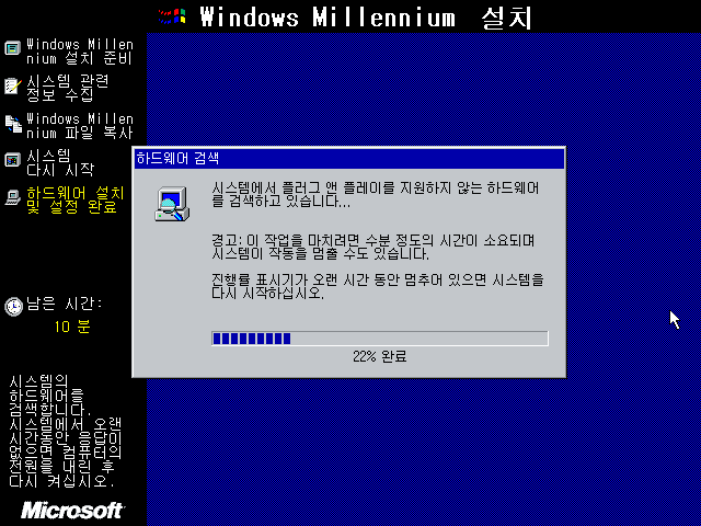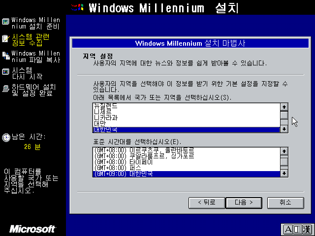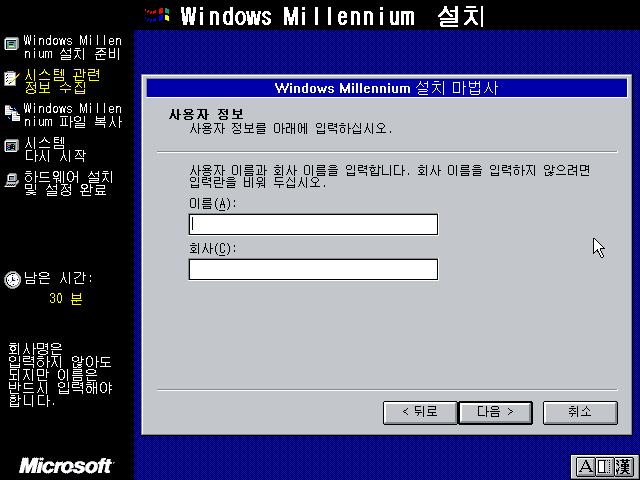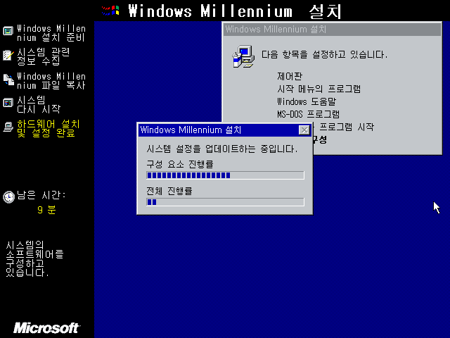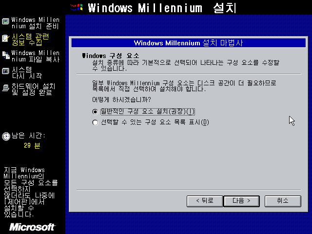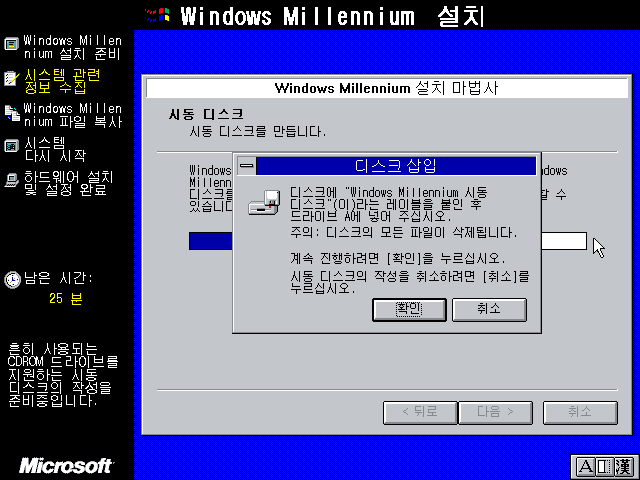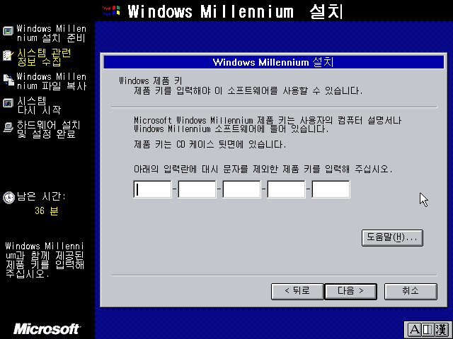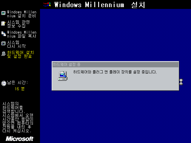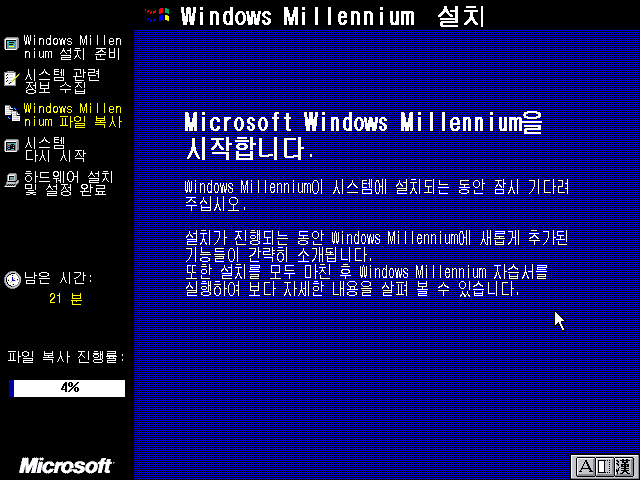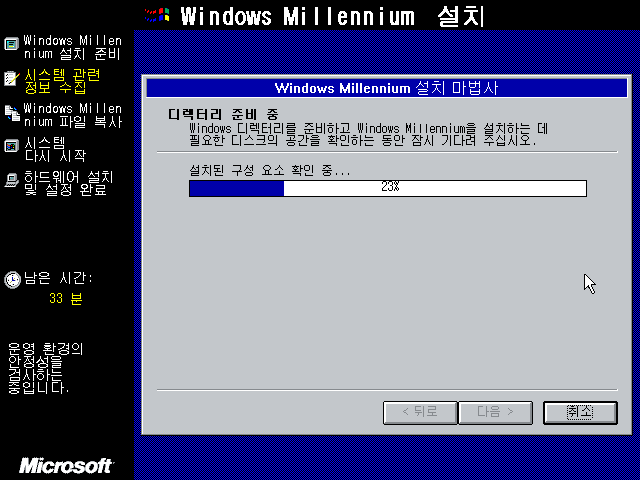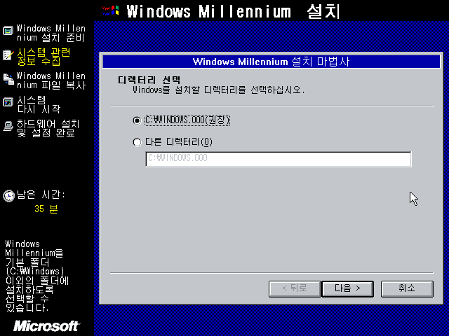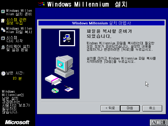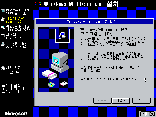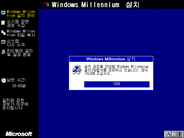 윈도우 밀레니엄 설치 마법사를 준비하고 있습니다.