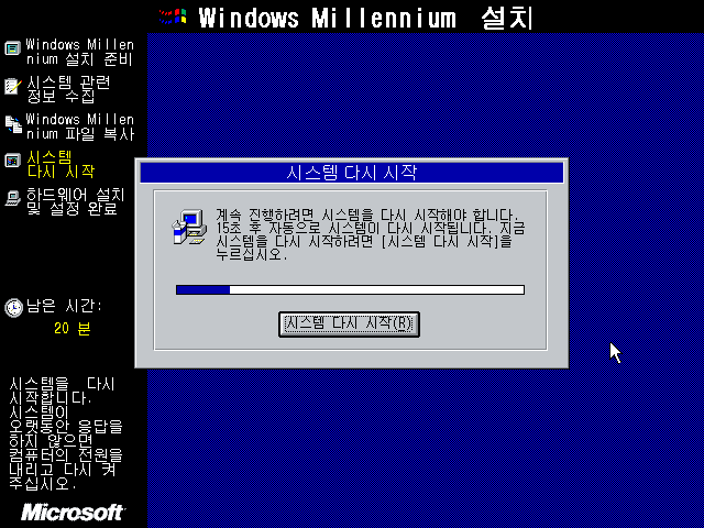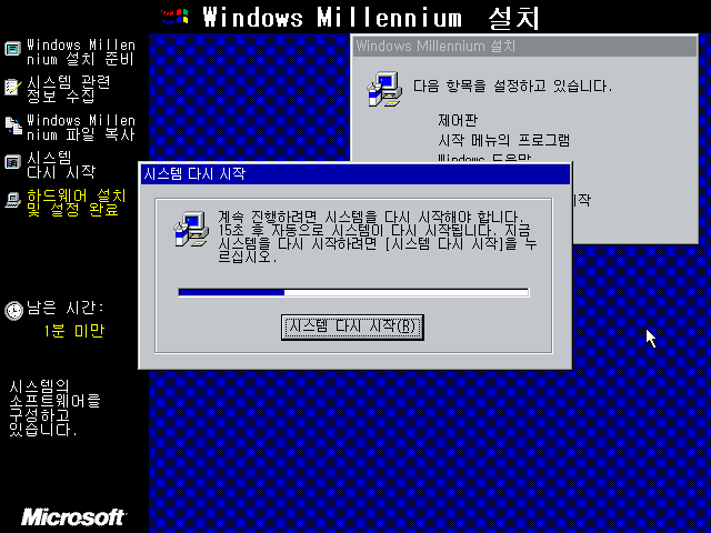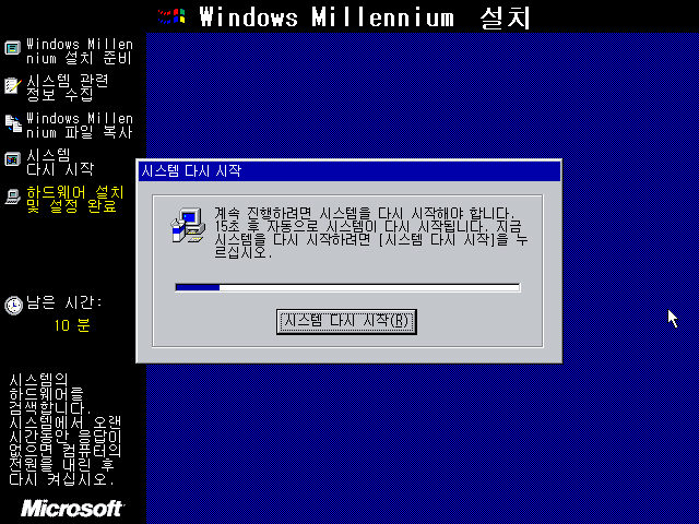 파일 복사가 모두 끝나고 시스템을 재시작합니다.
