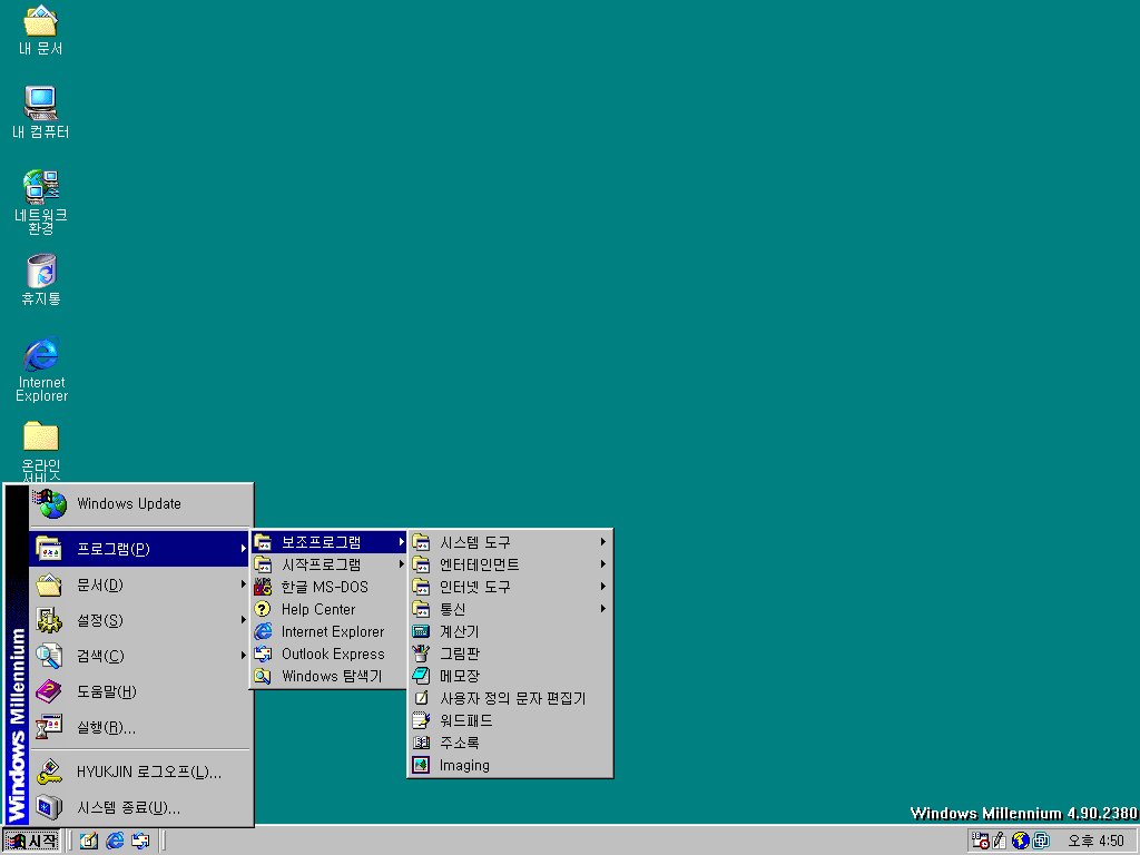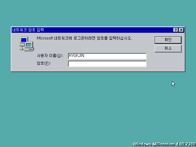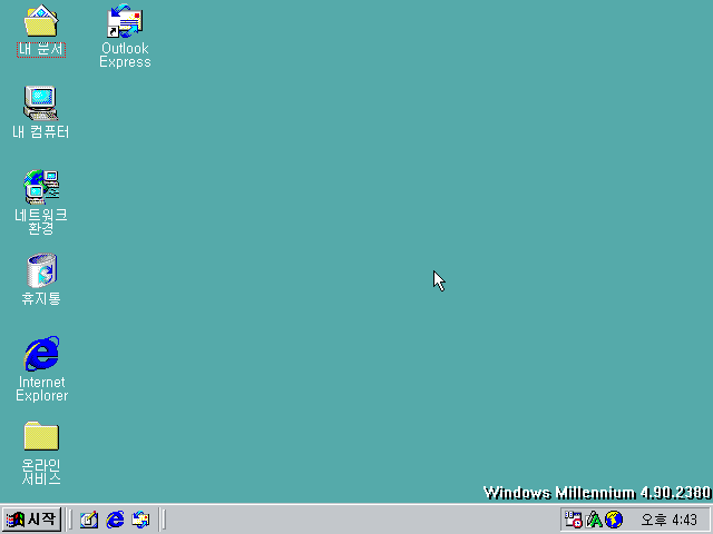 그래픽 드라이버를 잡은 후의 모습입니다. 우측 하단에 윈도우 밀레니엄 2380이라는 문구가 나옵니다. 화면 배색을 봤을 땐 아직 윈도우 98 같습니다.