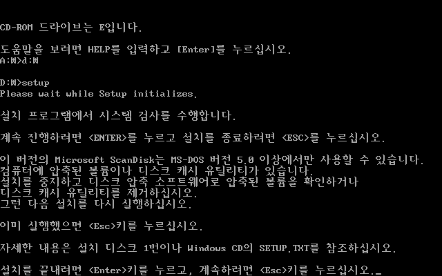 윈도우 밀레니엄 설치를 시작합니다. 설치 화면이 윈도우 98과 똑같습니다.