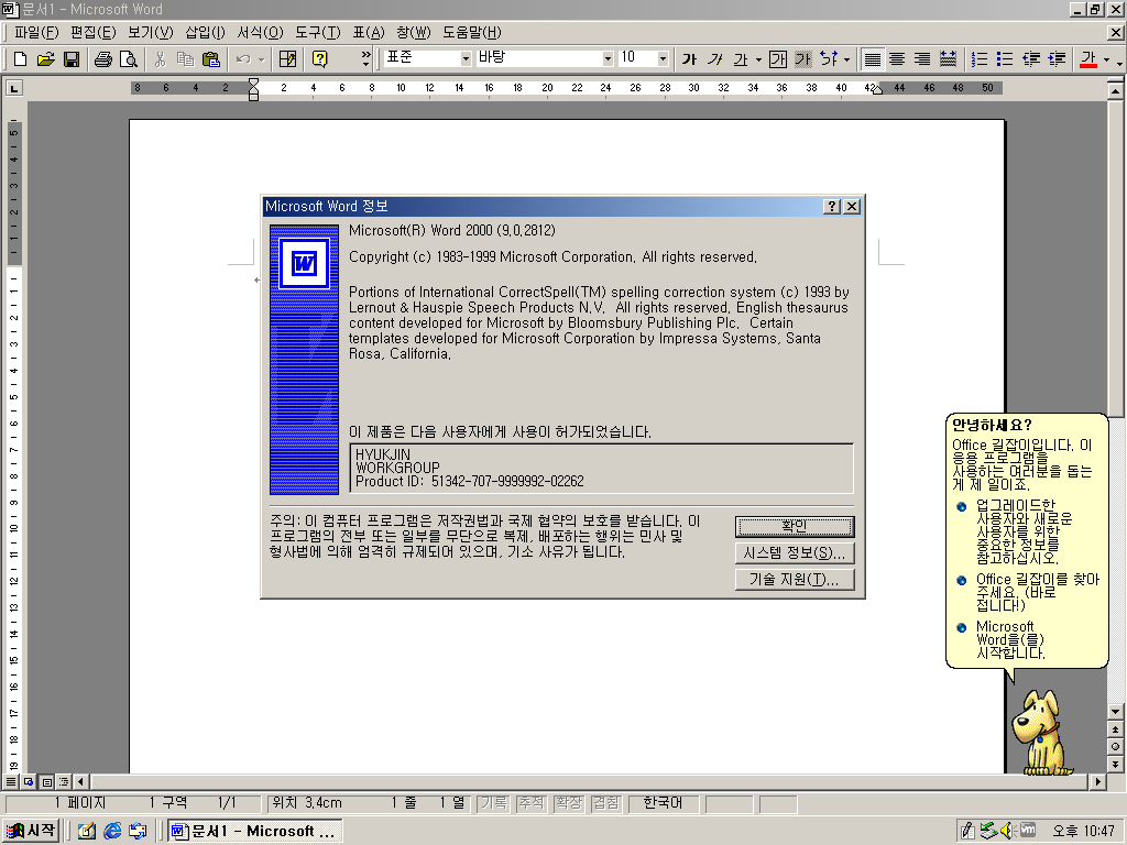 워드 정보입니다. 마찬가지로 2000이고, 얘도 9.0입니다. 빌드 넘버는 9.0.2812입니다.