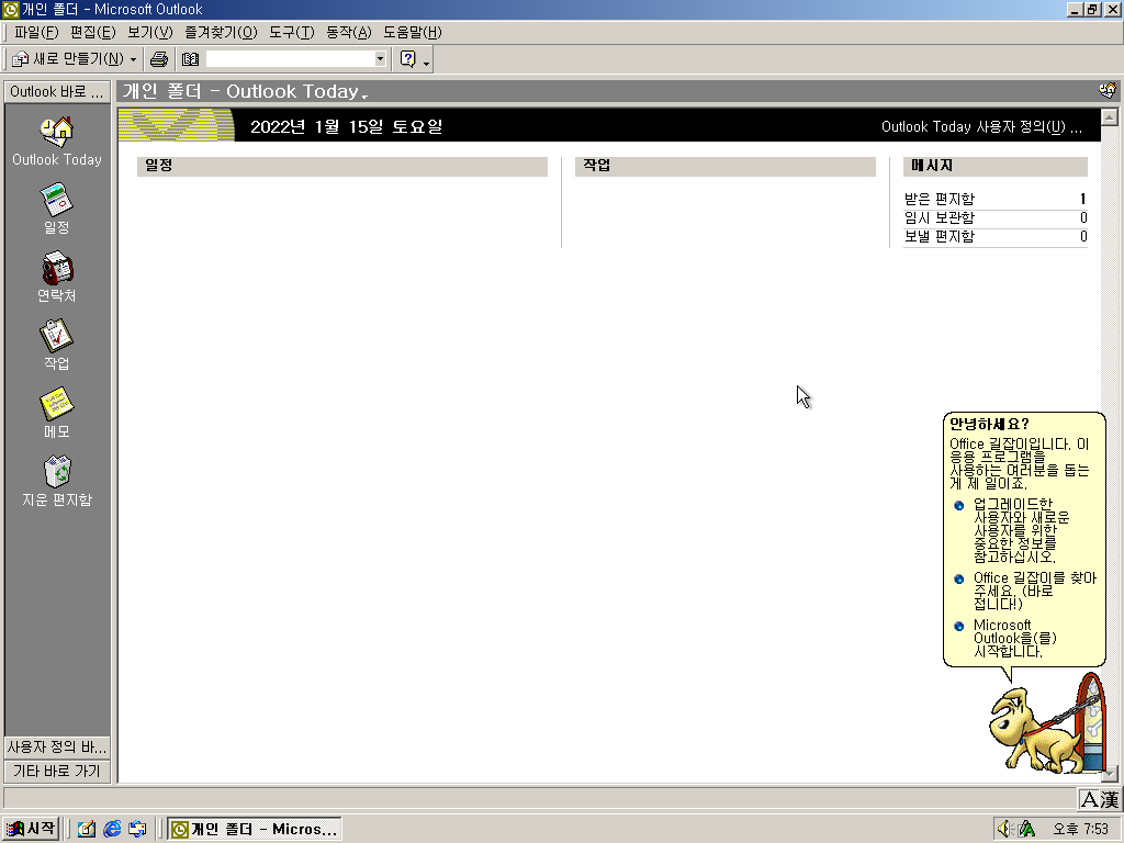 아웃룩의 모습입니다. 전자 메일을 주고 받을 수 있습니다.