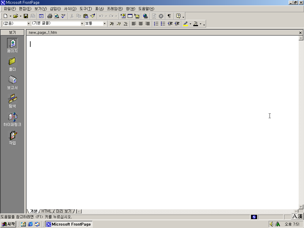 프론트페이지의 모습입니다. HTML 웹 에디터의 기능이 있습니다.