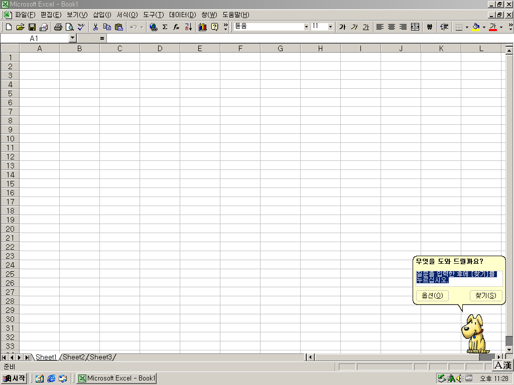 엑셀 2000의 모습입니다. 별다를 건 없습니다.