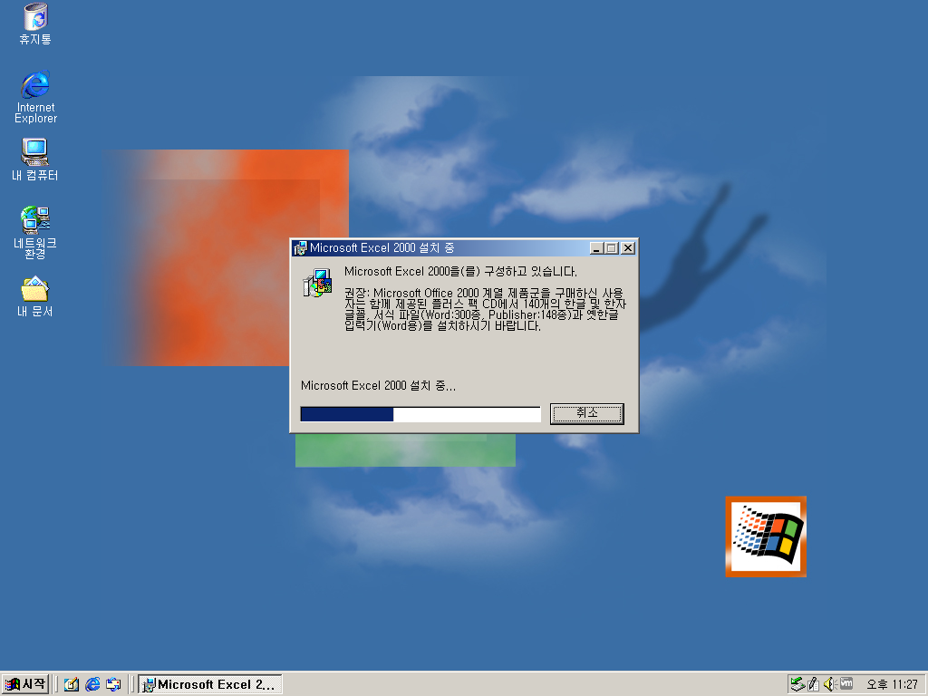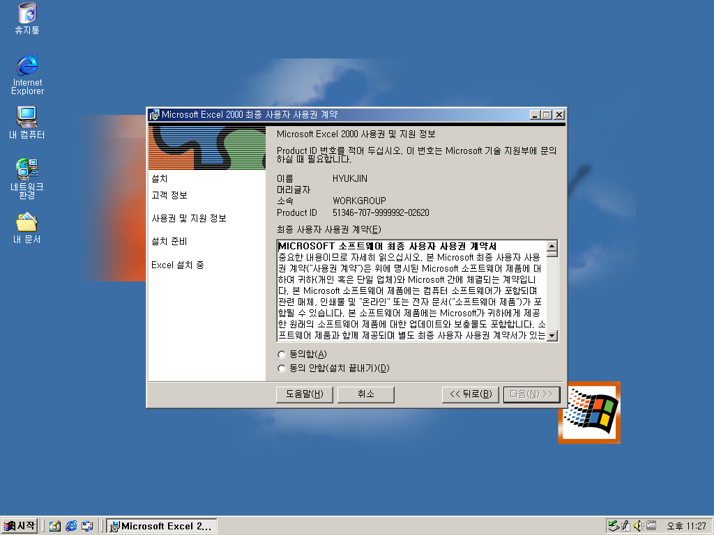 Microsoft Excel 2000을 설치해보았습니다. 이것 또한 마찬가지로 MS 오피스 2000에서 나온 엑셀 단품입니다.