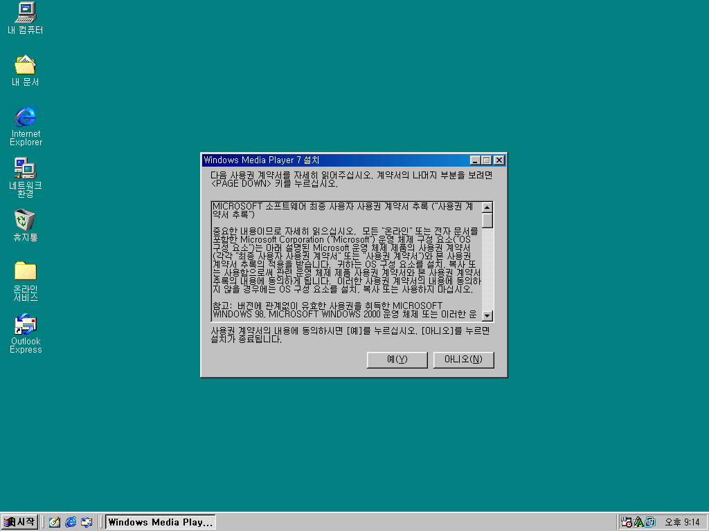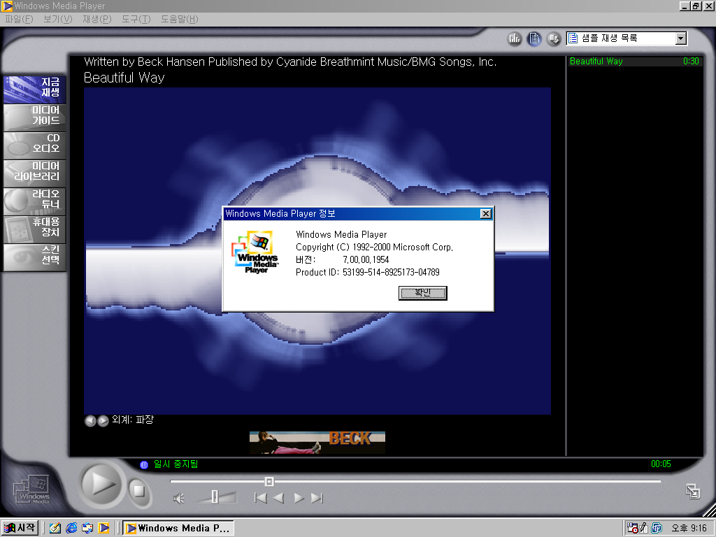 윈도우 미디어 플레이어 7입니다. 빌드 넘버는 7.00.00.1954입니다. 윈도우 95 (IE 4와 DCOM95가 설치된 환경)와 윈도우 NT 4.0, 윈도우 98 및 윈도우 98 SE, 윈도우 2000에 설치 가능합니다. 9.16MB 디스크 이미지 한 장입니다.