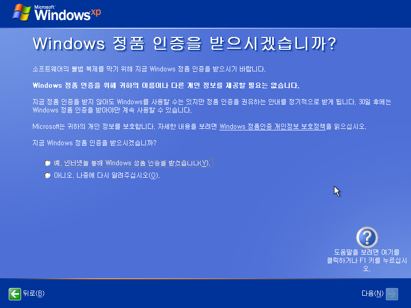 정품 인증을 받을건지 물어봅니다. 어차피 지금은 못받습니다.
