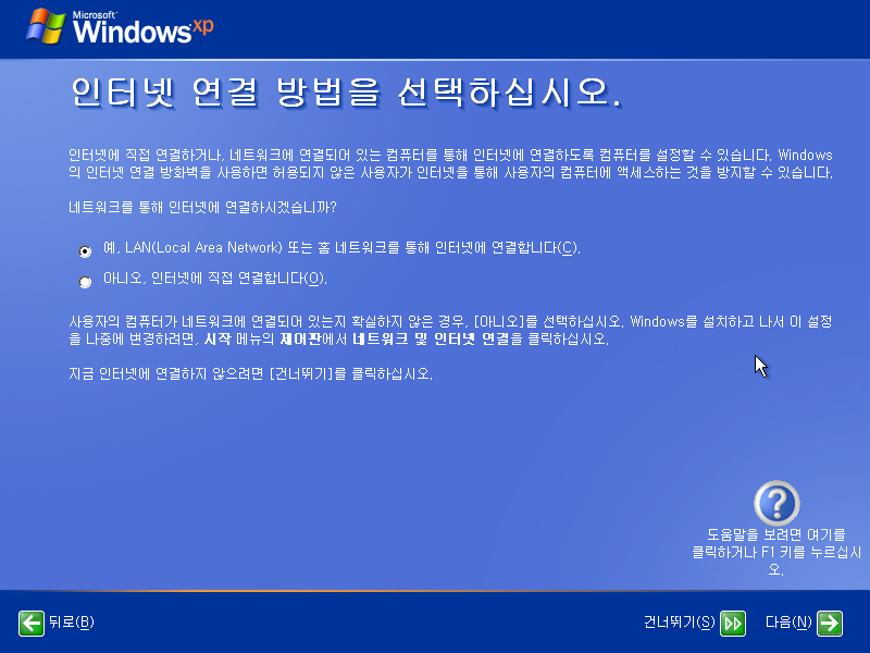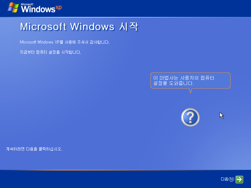 컴퓨터 설정을 시작합니다. 마법사를 건드리면 도움말을 볼 수 있습니다.