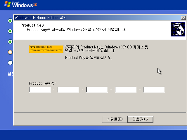 Windows XP Home Edition을 설치해보았습니다. 윈도우 XP 홈 에디션은 윈도우 XP 에디션 중 가장 기본이 되는 에디션입니다. 제가 알기로는 뭐 파일 암호화 기능이 없고, 안전 모드를 제외하고는 관리자 계정을 사용할 수 없다는 것 정도입니다. 사실 홈 에디션이라고 나오기는 했지만 정작 일반 가정에서는 프로페셔널을 더 많이 사용했습니다. 저희 집도 그랬구요.